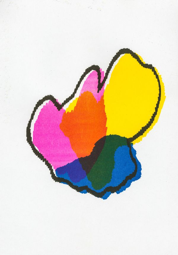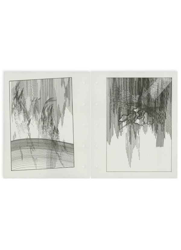 Im Rauschen zwischen zwei Radiostationen soll der Klang des Urknalls auszumachen sein. Die kosmische Mikrowellenhintergrundstrahlung, das weiße, rosa oder rote Rauschen, das Funkelrauschen – sind Begriffe physikalischer Störungen mit hohem poetischen Potenzial. Die entstandenen Zeichnungen und Monotypien sind für das Buch am Risografen vervielfältigt.