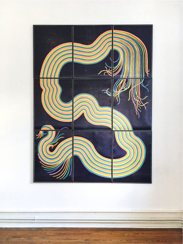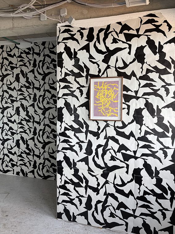 Wandinstallation mit Linoldrucken im studio blainville, Hamburg